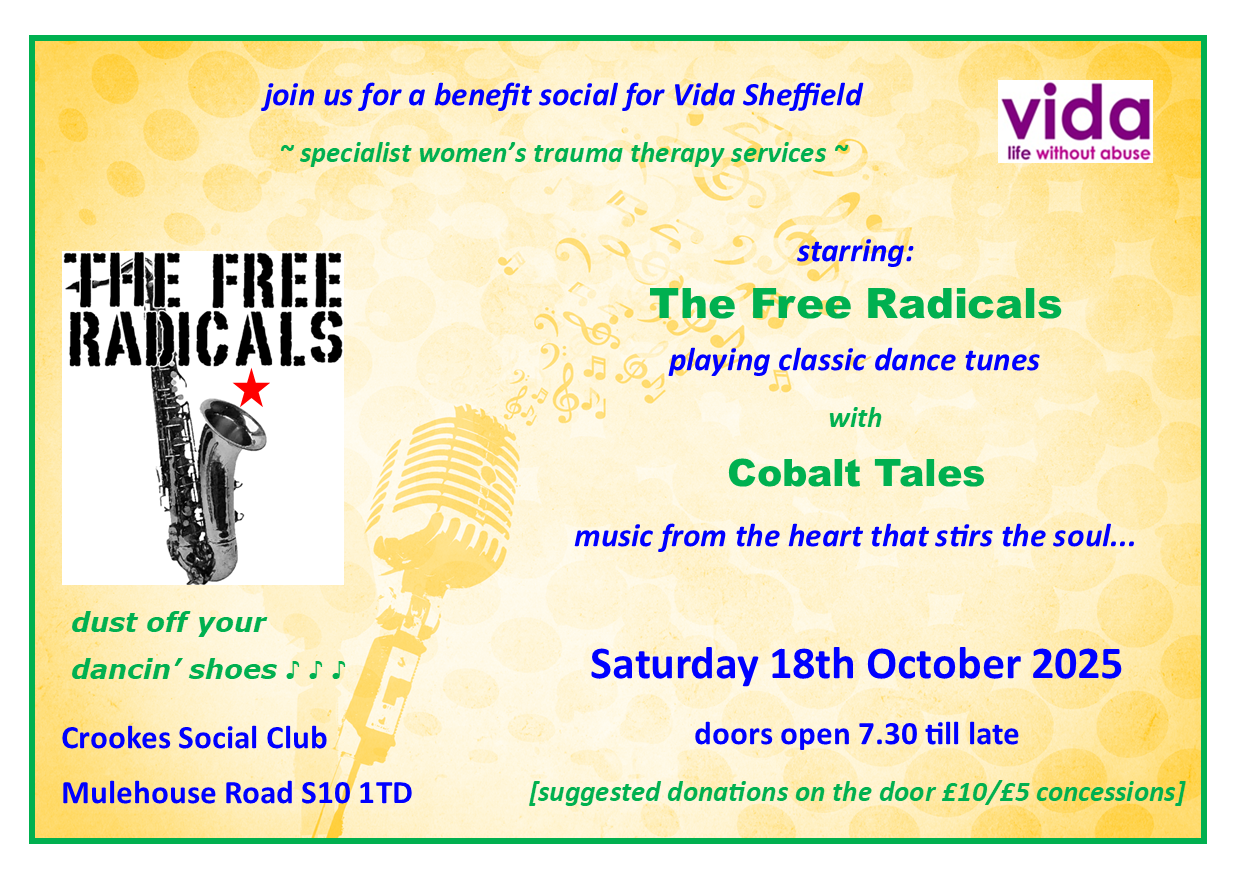 Book your FREE ticket and donate via Ticket Tailor for 18th October Vida Benefit.